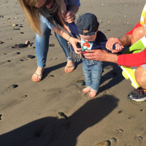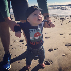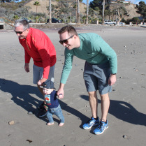 After we walked up and down Dana Point, we headed over to Capistano Beach where Teddy was able to stick his toes in the ocean. He loved walking on the beach and couldn’t stop his excitement at all the sites. I was thankful he wasn’t scared of the ocean – however I think he was so interested in watching his feet hit the sand – he didn’t have time to notice the big waves crashing around him.