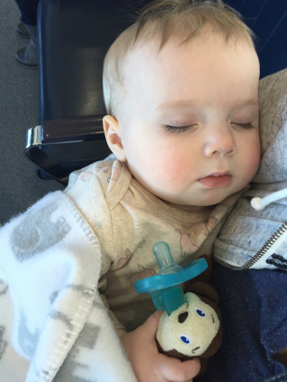 P.S. Tim especially loved it on the return flight home when everyone thought Teddy was a girl. I guess the outfit mom picked out – wasn’t the best choice. Oh well – I think he’s cute. Teddy finally tuckered out on the last flight – 15 minutes before we landed. I’d say he had a GREAT trip!
